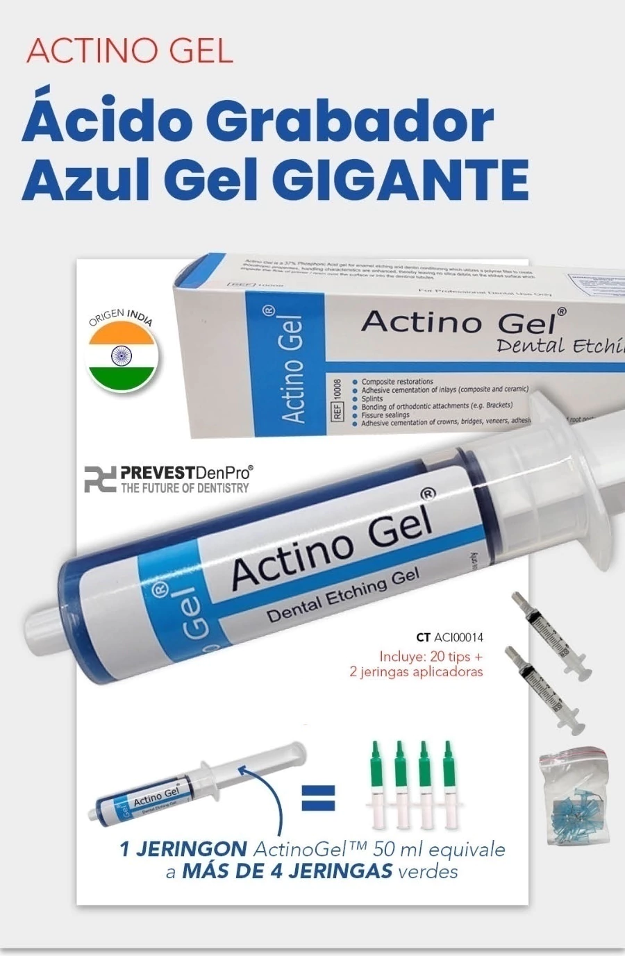 Con el Ácido Grabador Azul Gel Gigante 50 ML Actino Made in India, obtendrá un grabado dental preciso y eficiente, que garantiza la satisfacción tanto del profesional como del paciente. ¡Incorpore esta herramienta esencial a su práctica dental y mejore sus resultados!