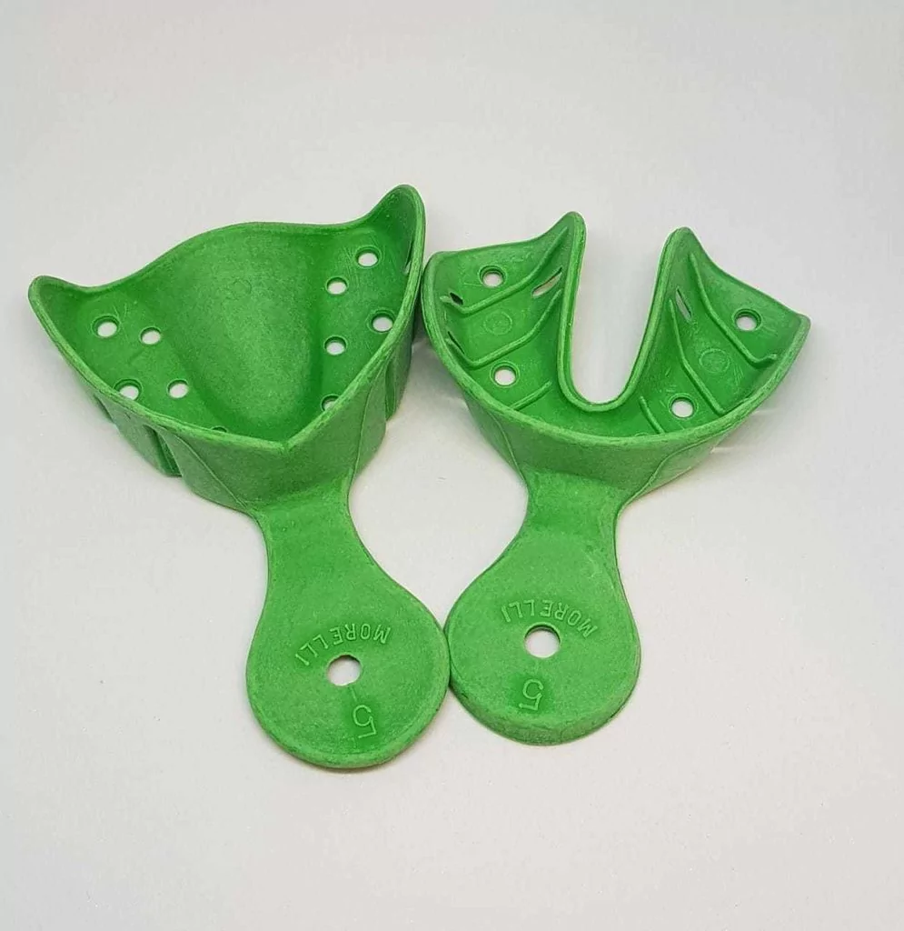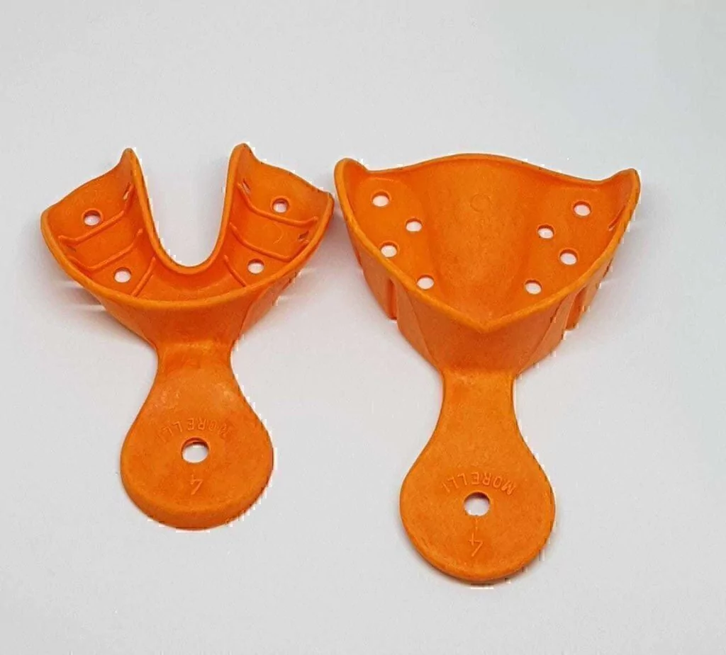Son utilizadas para reproducir moldes de impresión de los dientes, utilizando alginatos o cualquier otro material de impresión donde la reproducción detallada y estabilidad dimensional sean importantes. Presentan bordes redondeadas y lisas, canaletas de retención internas extras y perforaciones verticales que aumentan la retención del material. Ventajas - Usado con cualquier tipo de alginato; - Mayor retención de los materiales de impresión; - Facilidad de limpieza; - Esterilización en Autoclave hasta 121°C