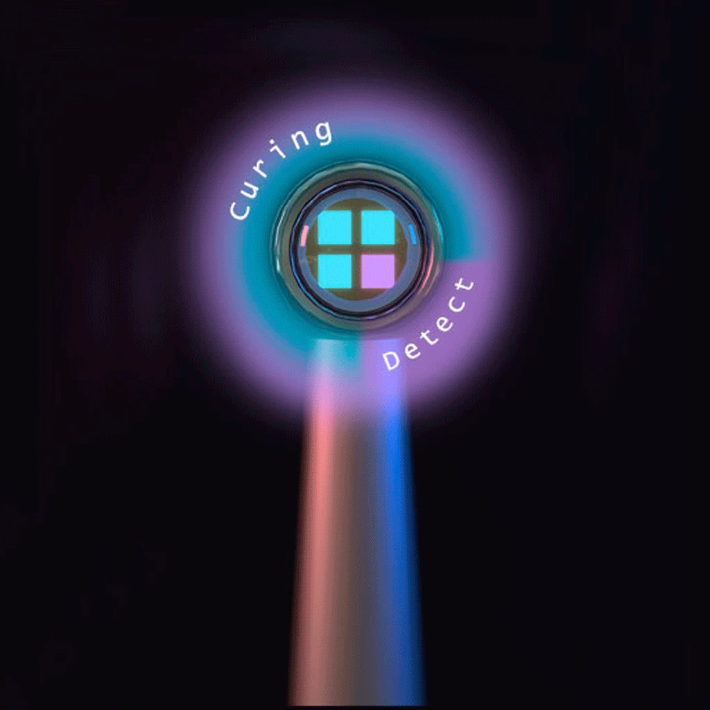 4 LED de luz de curado: 3 azules, 1 violeta