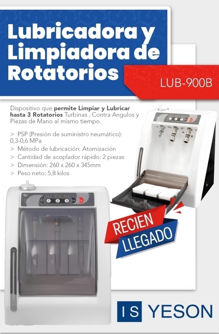 Con la limpiadora y lubricadora de rotatorios Yeson, lleve el mantenimiento de su instrumental odontológico al siguiente nivel. Asegure la calidad, seguridad y eficiencia en cada procedimiento.