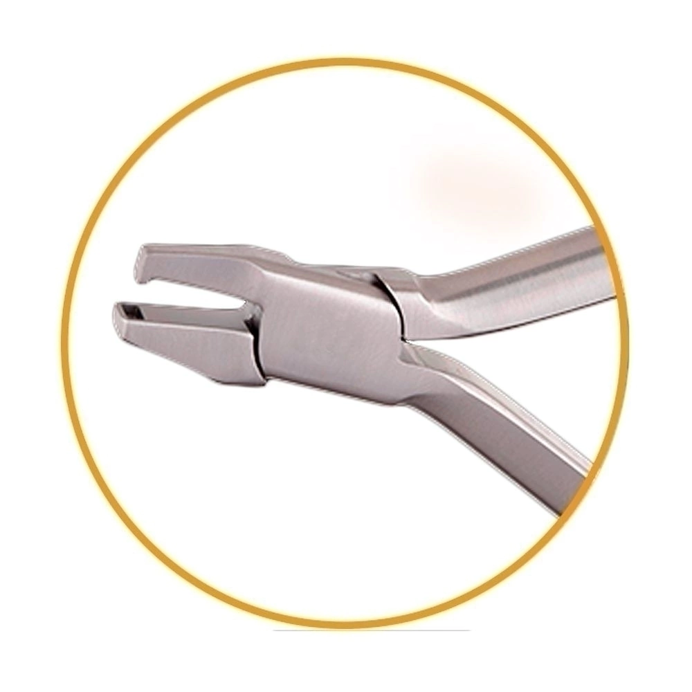 Klepp Pinza para Alineadores El alicate horizontal crea una depresión para mejorar el torque de la raíz individual. Además, se puede usar para mejorar la retención de alineadores o retenedores creando una depresión en la socavación de un diente o debajo de un accesorio pegado. La realización de áreas de presión verticales en la zona mesial y distal del diente, tanto por vestibular como palatino, refuerza la acción de corrección de rotaciones del alineador. Fabricado con acero inoxidable de máxima calidad. Longitud: 13 cm.