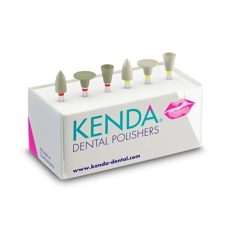 Pulidores Diamantados de Silicona Pulidores Kenda de diamantes aglutinados en silicona flexible para uso en restauraciones dentales. Uso como pulidor general en restauraciones de composites de todo tipo y cerámicas Hibridas de todo tipo (Crios y otros). Pulidor con capacidad de 2 pasos: conformado satinado y pulido brillante CARACTERISTICAS KENDA DELUXE: -Ideal para Composites, Compomeros y Cerámicas Hibridas -Sistema de pulidores diamantados de 2 pasos: Primer paso pulidor Gris Claro de grano fino de 32-8 micrones Segundo paso pulidor Beige Claro de grano extra fino de 8-4 micrones -Autoclavable a 134ºC -Velocidad recomendada 10000 rpm -Doble combinación de diamante para mayor resultado estético y alto brillo -Flexible - Certificacion ISO POR QUÉ LOS ODONTÓLOGOS DEBEN PULIR LAS RESTAURACIONES? +SALUD: el pulido elimina las superficies irregulares las cuales producen acumulación de placa bacteriana y el riesgo de caries secundaria. En los sectores gingivales no pulidos se incrementa el riesgo de periodontitis y el pulido alarga la vida de las restauraciones. +COMFORT: la lengua humana puede detectar rugosidades de hasta 1 micrometro, por lo que una restauración pulida da una sensación de confort al paciente. +ESTÉTICA: se obtiene un pulido estético reduciendo la pigmentación de la superficie, produciendo un acabado brillante natural. DIFERENTES SISTEMAS DE PULIDO +1 PASO: se da con un solo tipo de pulidor, generalmente de silicona+diamante. Se obtienen buenos resultados al alterar la presión de pulido. El pre-pulido y contorneado de superficie se da con mayor presión y el pulido a alto brillo se da disminuyendo suavemente la presión. +2 PASOS: se da con dos tipos de pulidores, el primero con abrasivo de grano medio para lograr el contorneado y prepulido de las superficies, y un segundo de grano fino para el pulido de alto brillo. +3 PASOS: se da con tres tipos de abrasivos diferentes. El primero es para remover el exceso de material y contornear la restauración preparando para el pulido, luego sigue el pulido para suavizar la superficie dejando un brillo satinado, el paso final es con grano fino para un pulido de alto brillo. FORMAS DE PULIDORES +PUNTAS: esta forma es ideal para las áreas cervicales y oclusales y alivios oclusales. +COPAS: ideales para cúspides en posteriores, sectores proximales y en anteriores para sectores bucal, lingual y palatal. +DISCOS: son ideales para incisivos, restauraciones grandes, bordes incisales y áreas interproximales. Presentación: Kit surtido x 6.
