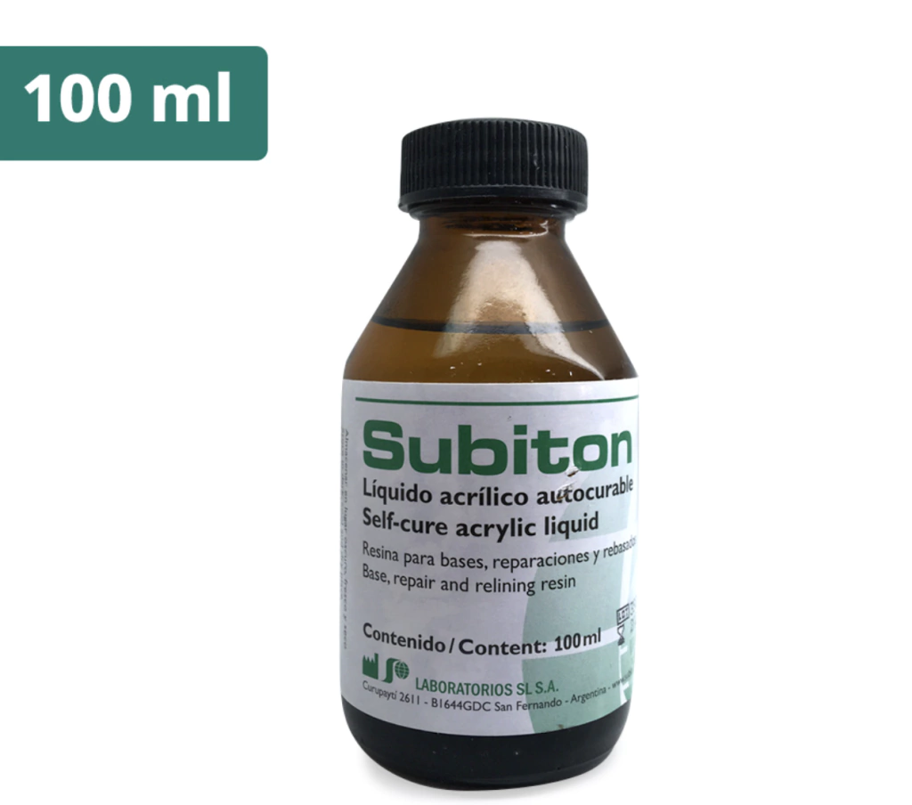 Descubrí el Subiton Líquido Acrílico Autocurable en presentación de 100 ml, un monómero especialmente formulado para trabajos de acrílico con una rápida y eficiente autocuración. Este producto es ideal para profesionales que buscan calidad y precisión en sus aplicaciones odontológicas y estéticas.