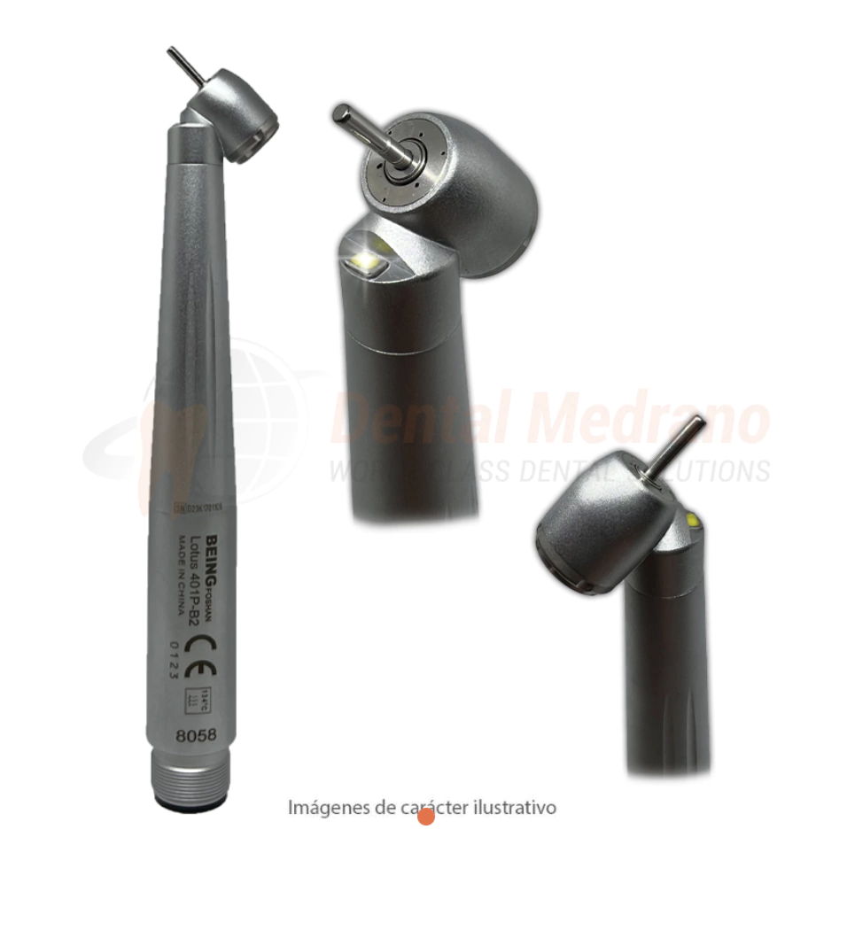 Turbina Lotus 401P 45º LED- angulada para molares impactados- conexion Borden 2 orificios -incluye sistema de iluminacion led autogenerada - esta turbina con la cabeza acodada a 45º permite acceso a espacios reducidos en osteriores. Indicacion: cirugia , cirugia de muelas de juicio SISTEMA DE AGARRE DE FRESA a boton PUSH BUTTON sin SACAFRESA SPRAY TRIPLE PARA MEJOR REFRIGERACION -RULEMANES CERAMICOS de LARGA VIDA LUBRICAR 2 A 3 VECES POR DIA SEGUN USO Presion de Uso: 0.28-0.4Mpa Presion de Agua: 198Kpa (2kg) Velocidad de rotacion: 380.000-450.000 RPM (CLASE B max 420.000) Tamaño de cabezal: 10.8mm largo 12.1mm fresa aplicable: 1.59-1.6mm diametro , 21-23mm largo sonido: menor o igual a 60DB GARANTIA: 6 MESES POR DEFECTOS DE FABRICACIÓN (garantia de los RODAMIENTOS 2 MESES) La garantia caduca por falta de lubricacion adecuada. 11/2024 lanzamiento 2T25 Marca: Being